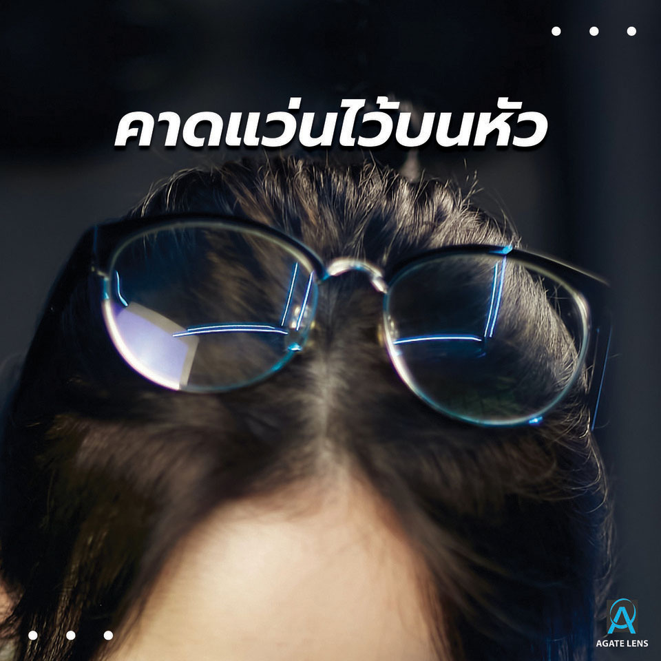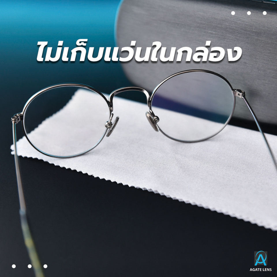 เวลาถอดและใส่แว่นตา ควรใช้มือทั้งสองข้าง เพื่อช่วยประคอง รักษาทรงแว่นตา ลดเกิดการบิดหรือง้างแว่น